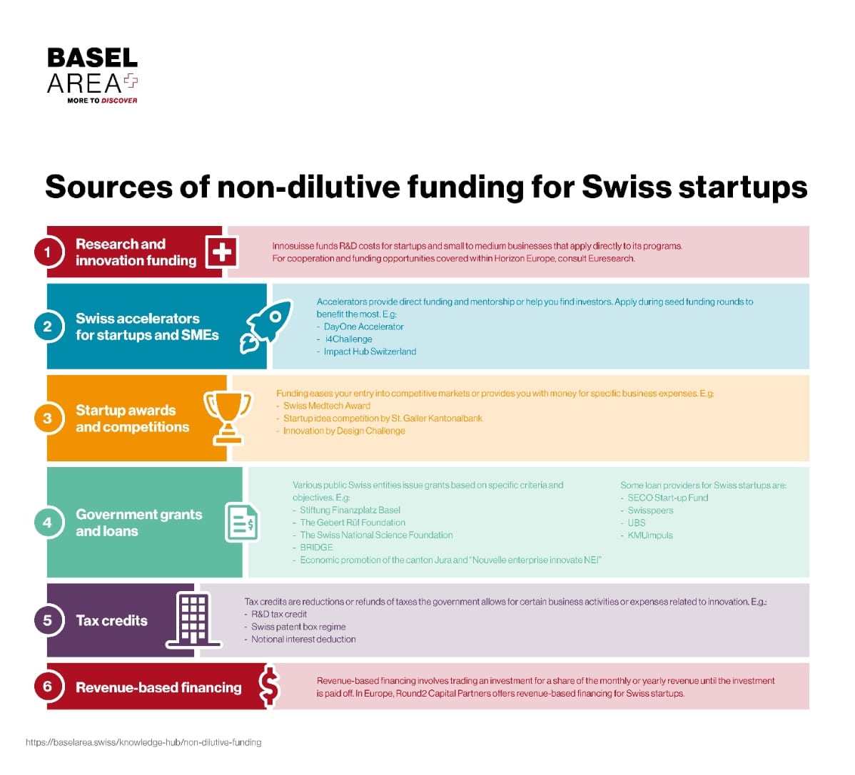 Here are the top non-dilutive funding sources in the Switzerland startup ecosystem: